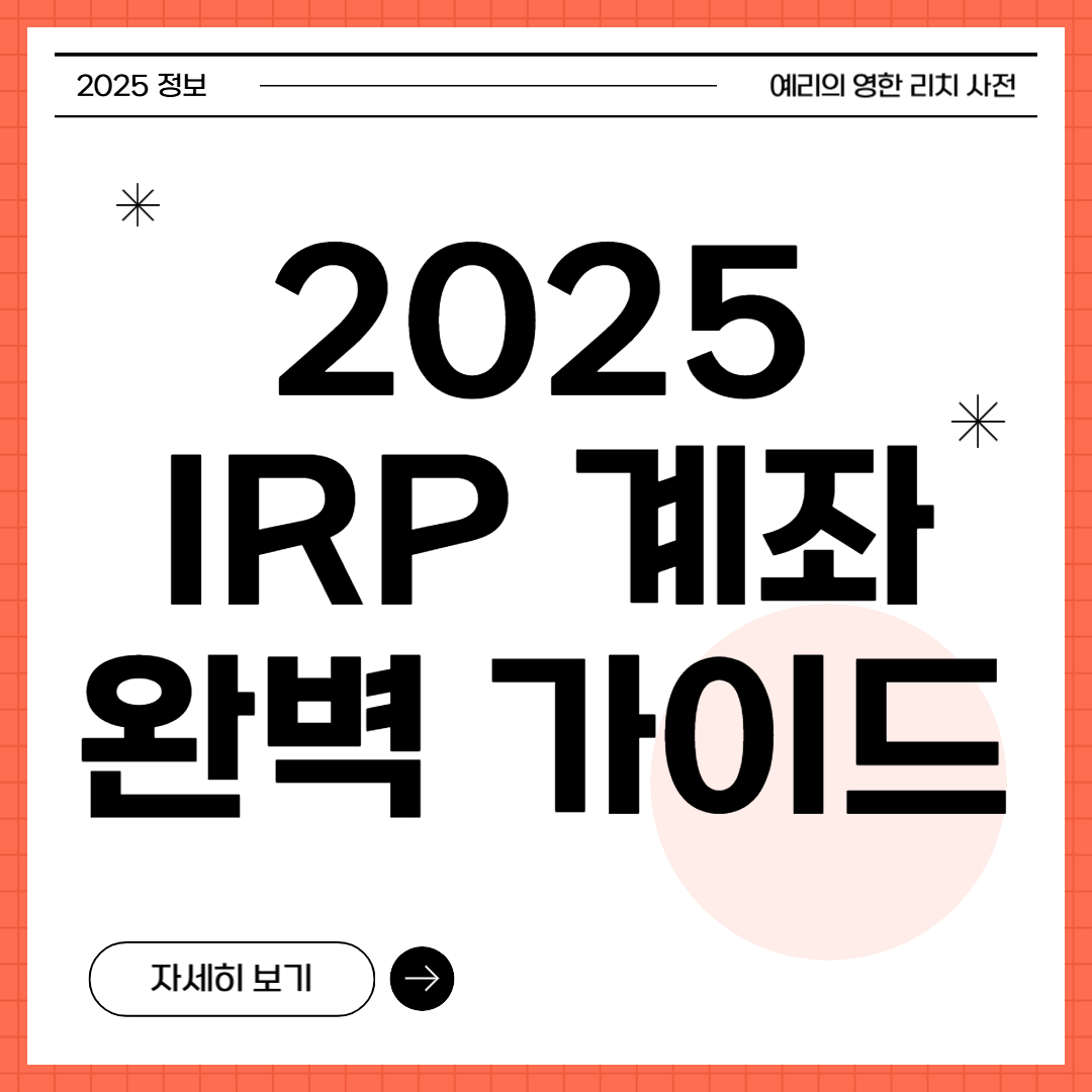 이 글에서는 IRP 계좌란 무엇인지, 2025년 개정 내용, 세액공제 혜택, 운용 전략, 주의할 점까지 한 번에 정리해 드립니다. 특히 초보 투자자라면 꼭 읽어보시길 추천드립니다.